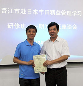 【本報(bào)訊】2012年7月2日下午,由晉江市總商會(huì)發(fā)起和組織的“晉江市赴日本豐田精益管理學(xué)習(xí)研修班交流座談會(huì)”在我司總部二樓大會(huì)議室舉行。晉江總商會(huì)會(huì)長(zhǎng)、潯興股份公司董事長(zhǎng)施能坑主持召開(kāi)會(huì)議。