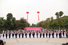 【本報(bào)訊】由晉江市總工會(huì)、人力資源和社會(huì)保障局、郵政局主辦的“幸福百分百”晉江百對(duì)職工集體婚禮于2013年1月1日舉行,120對(duì)新人沐浴著新年的氣息,在眾人的祝福中,喜結(jié)良緣。晉江市委常委、常務(wù)副市長(zhǎng)許宏程出席此次活動(dòng),為新人們送上了最溫馨的祝福,并為百對(duì)新人證婚。