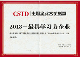【本報訊】2013年11月7日,由益策(中國)學習管理機構、益策實戰商學院及CSTD-中國企業大學聯盟主辦的“2013年中國企業培訓大會”在廈門召開。在本次中國最佳學習型企業評選活動中,我司與廈門鎢業、廈門翔業集團、恒安集團等8家企業同獲福建省“最具學習力企業”稱號。