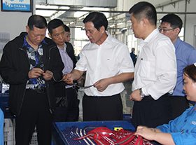 【本報訊】5月10日,中國五金制品協會拉鏈分會理事長葉克連協洪建設、黃斯華副理事長等一行到公司調研,股份公司執行總裁施明取、副總裁張田,福建公司副總經理鄭蘭瑛、副總經理張建群、副總經理李亞輝熱情接待了調研組一行,并在二樓大會議室就公司今年第一季度的發展情況、知識產權工作等方面舉行了座談會。